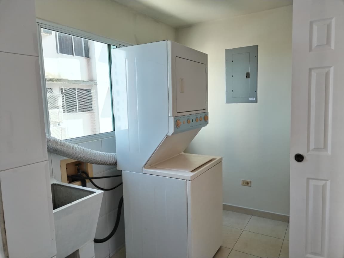 Área de 87 m², incluye línea blanca (lavadora-secadora, estufa y refrigerador).